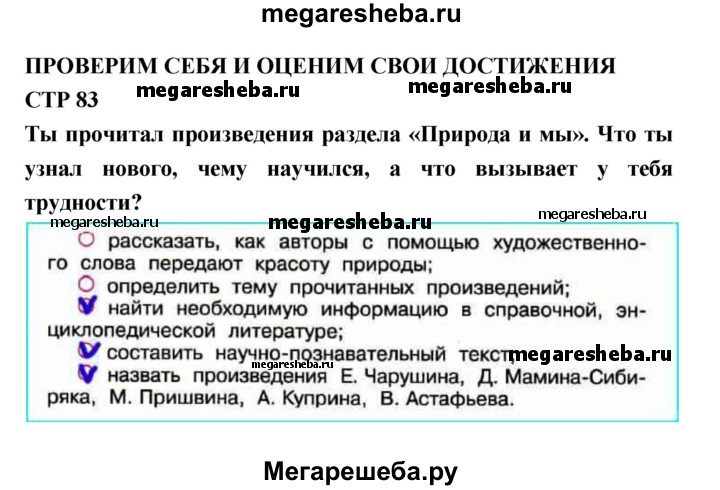 Подробный решебник (ГДЗ) по Литературе за 4 (четвертый) класс рабочая тетрадь - готовый ответ страница - 83. Авторы учебника: Бойкина, Виноградская. Издательство: Просвещение 2016-2023.