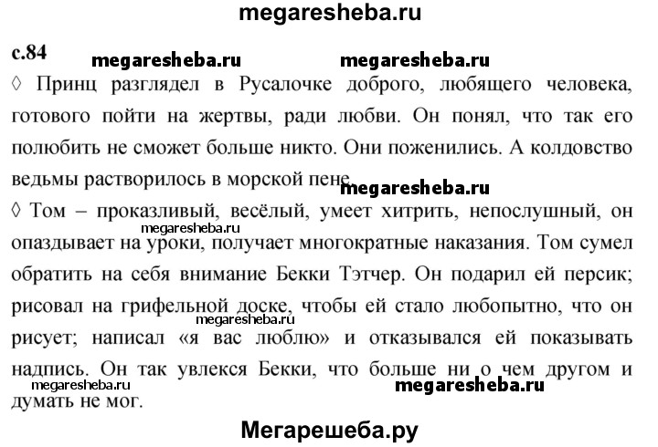 Подробный решебник (ГДЗ) по Литературе за 4 (четвертый) класс рабочая тетрадь - готовый ответ страница - 84. Авторы учебника: Бойкина, Виноградская. Издательство: Просвещение 2016-2023.