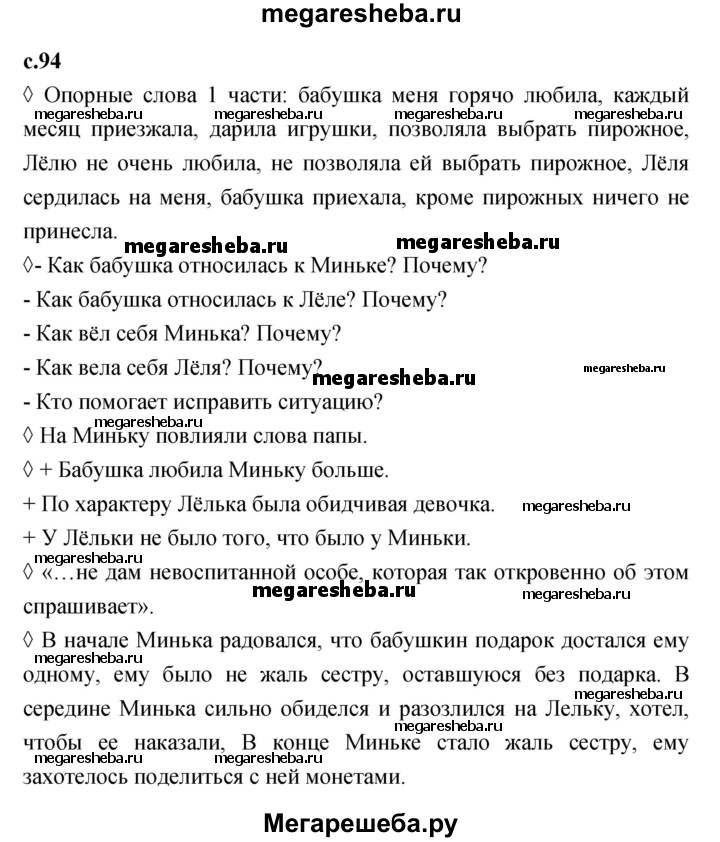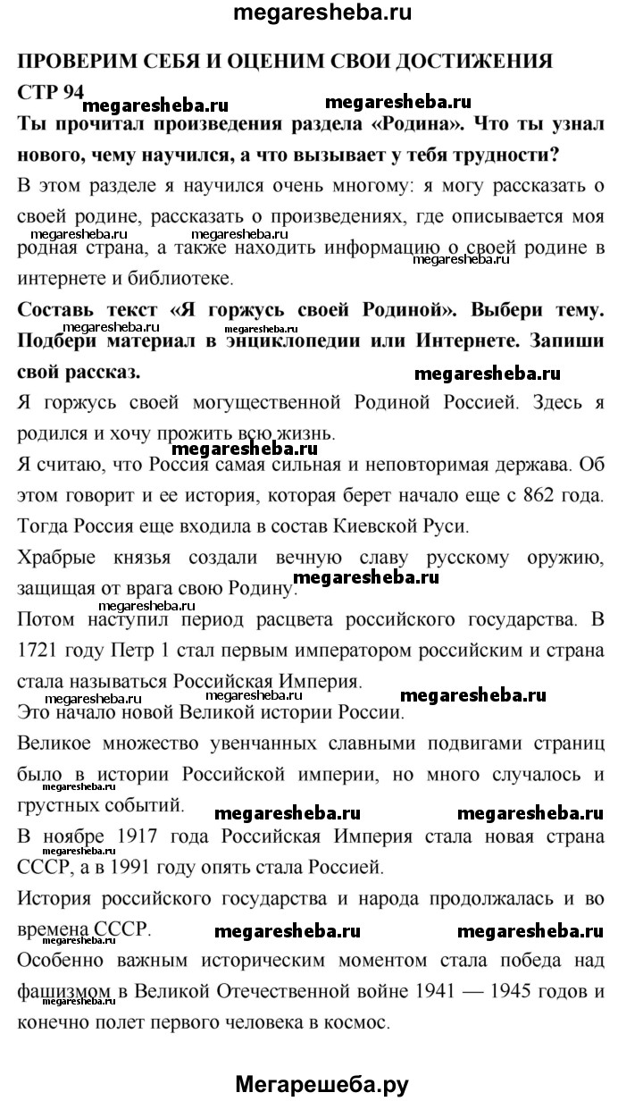 Подробный решебник (ГДЗ) по Литературе за 4 (четвертый) класс рабочая тетрадь - готовый ответ страница - 94. Авторы учебника: Бойкина, Виноградская. Издательство: Просвещение 2016-2023.