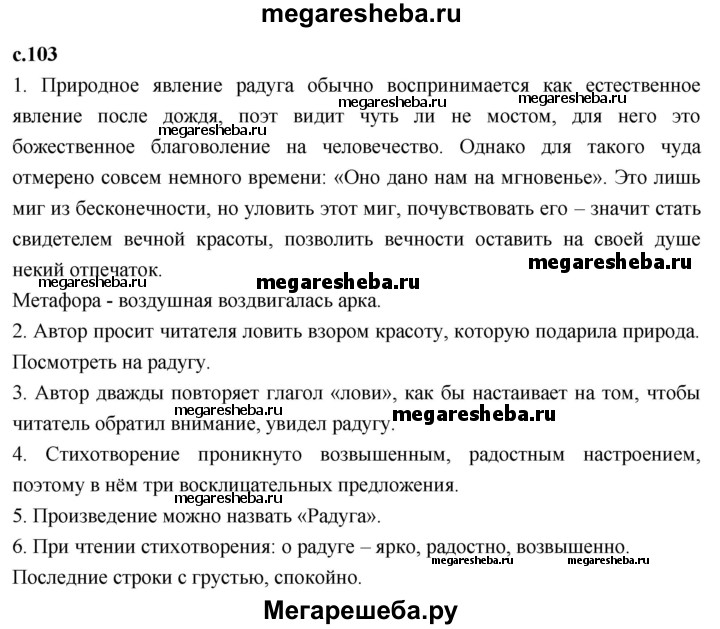 Подробный решебник (ГДЗ) по Литературе за 4 (четвертый) класс - готовый ответ часть 1. страница - 103. Авторы учебника: Климанова, Горецкий, Голованова. Издательство: Просвещение 2018-2023.