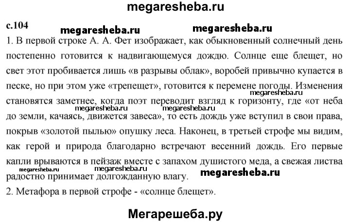 Подробный решебник (ГДЗ) по Литературе за 4 (четвертый) класс - готовый ответ часть 1. страница - 104. Авторы учебника: Климанова, Горецкий, Голованова. Издательство: Просвещение 2018-2023.