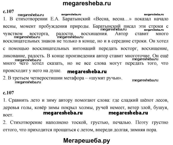 Подробный решебник (ГДЗ) по Литературе за 4 (четвертый) класс - готовый ответ часть 1. страница - 107. Авторы учебника: Климанова, Горецкий, Голованова. Издательство: Просвещение 2018-2023.