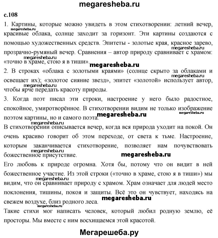 Подробный решебник (ГДЗ) по Литературе за 4 (четвертый) класс - готовый ответ часть 1. страница - 108. Авторы учебника: Климанова, Горецкий, Голованова. Издательство: Просвещение 2018-2023.
