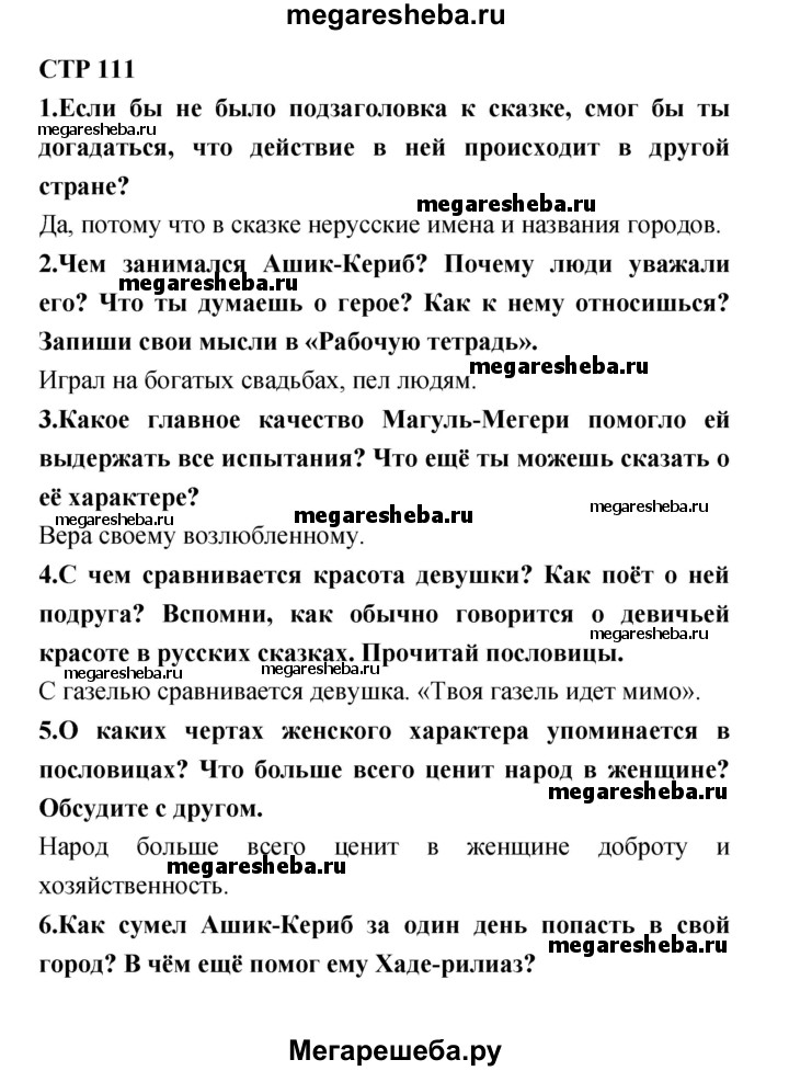 ГДЗ по литературе 4 класс Климанова часть 1. страница - 111