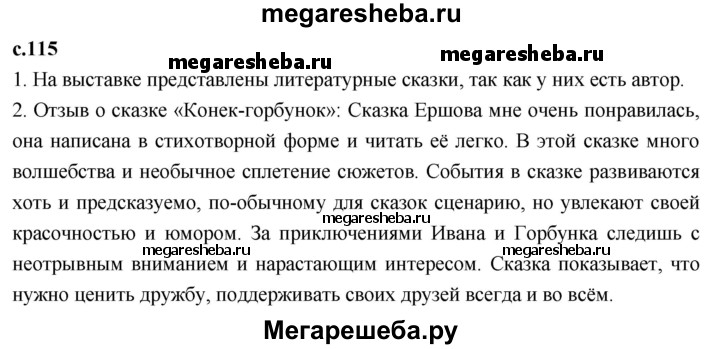 Подробный решебник (ГДЗ) по Литературе за 4 (четвертый) класс - готовый ответ часть 1. страница - 115. Авторы учебника: Климанова, Горецкий, Голованова. Издательство: Просвещение 2018-2023.