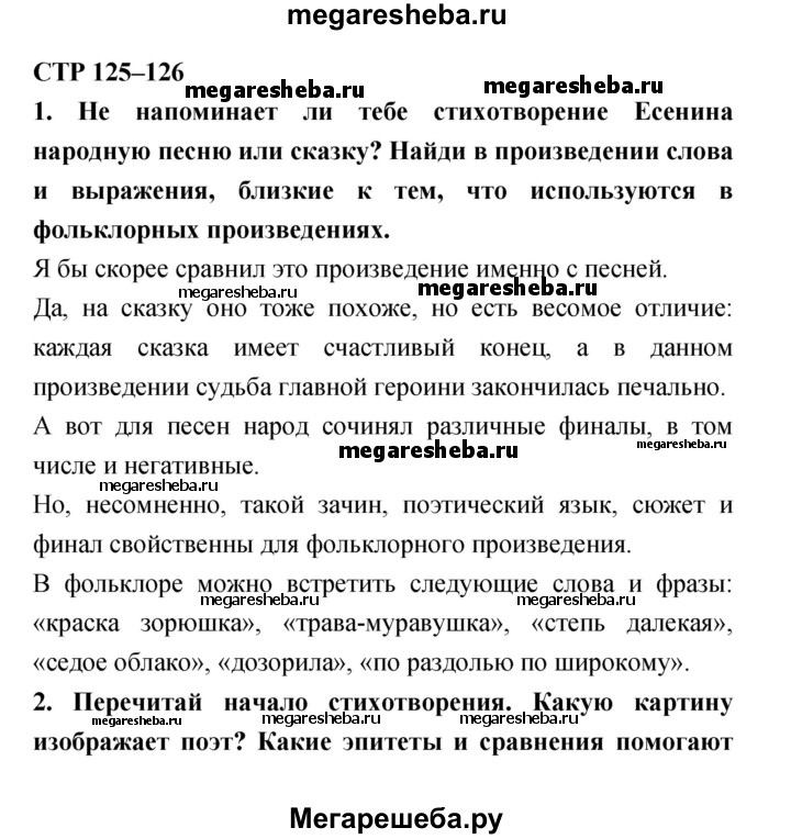 Подробный решебник (ГДЗ) по Литературе за 4 (четвертый) класс - готовый ответ часть 2. страница - 125–126. Авторы учебника: Климанова, Горецкий, Голованова. Издательство: Просвещение 2018-2023.