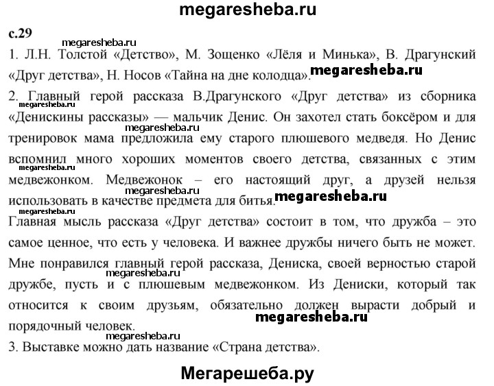 Подробный решебник (ГДЗ) по Литературе за 4 (четвертый) класс - готовый ответ часть 2. страница - 29. Авторы учебника: Климанова, Горецкий, Голованова. Издательство: Просвещение 2018-2023.