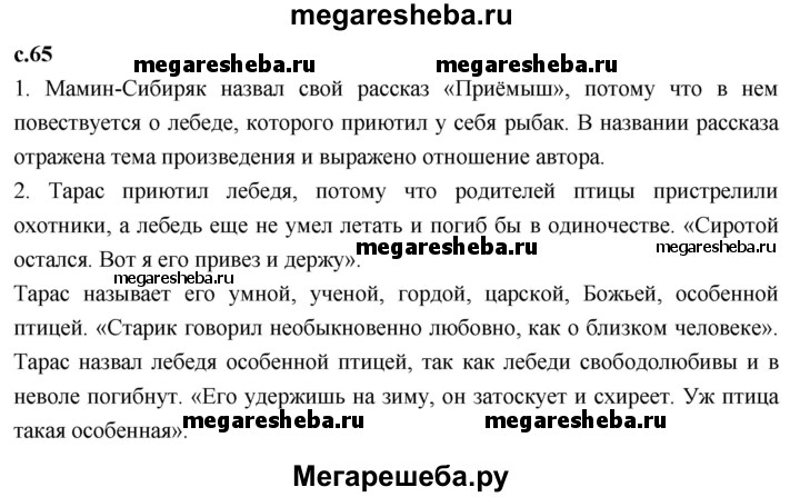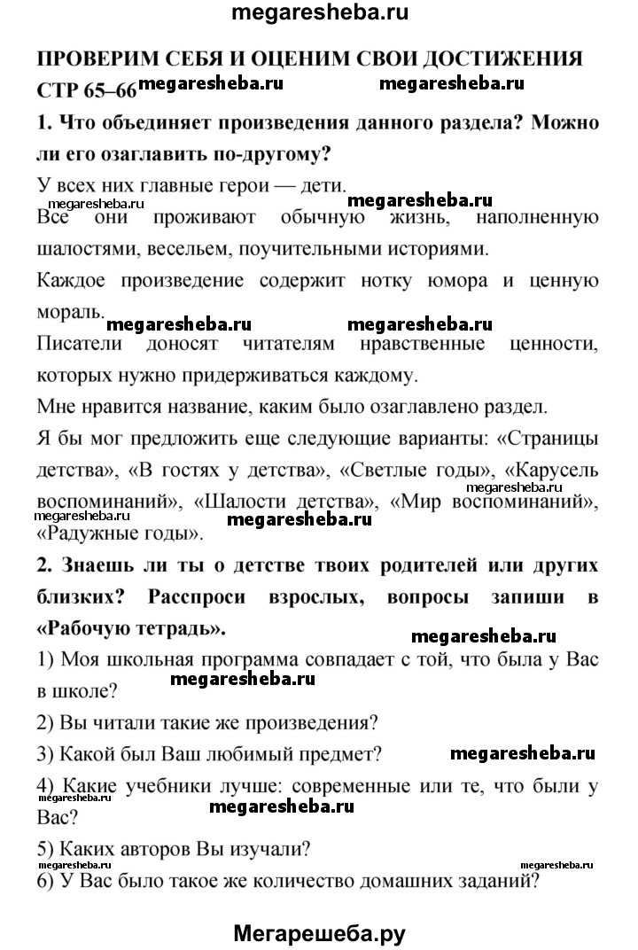 Подробный решебник (ГДЗ) по Литературе за 4 (четвертый) класс - готовый ответ часть 2. страница - 65. Авторы учебника: Климанова, Горецкий, Голованова. Издательство: Просвещение 2018-2023.