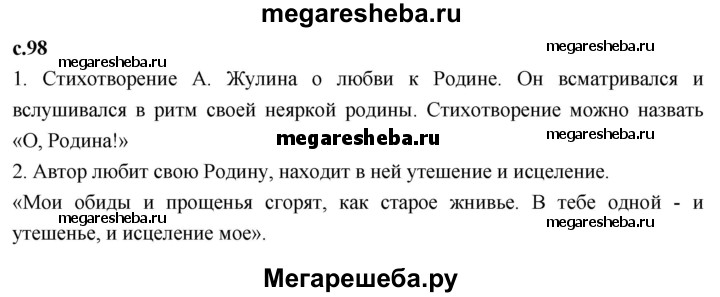 Подробный решебник (ГДЗ) по Литературе за 4 (четвертый) класс - готовый ответ часть 2. страница - 98. Авторы учебника: Климанова, Горецкий, Голованова. Издательство: Просвещение 2018-2023.