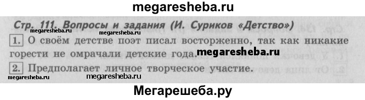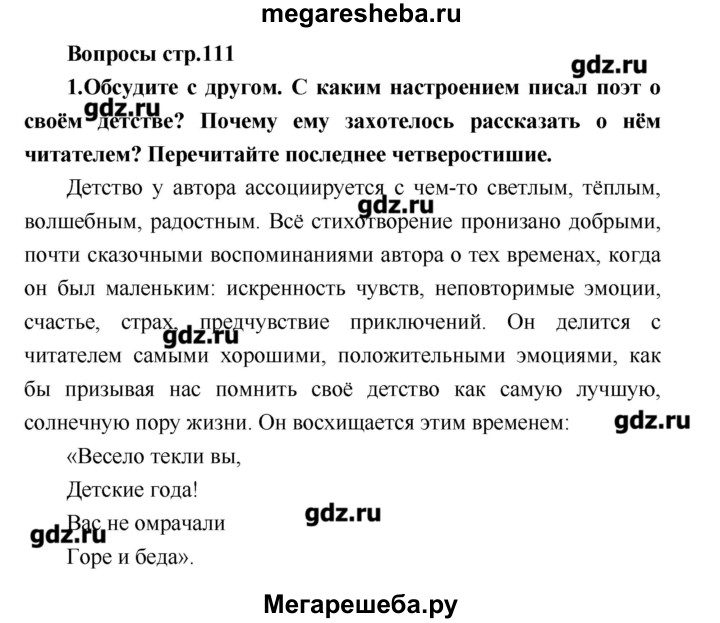 ГДЗ по литературе 4 класс Климанова часть 1. страница - 111
