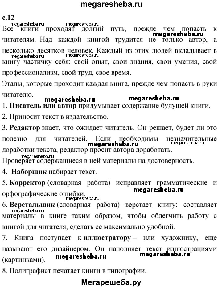 Подробный решебник (ГДЗ) по Литературе за 4 (четвертый) класс - готовый ответ часть 1. страница - 12. Авторы учебника: Климанова, Виноградская, Бойкина. Издательство: Просвещение 2017-2023.