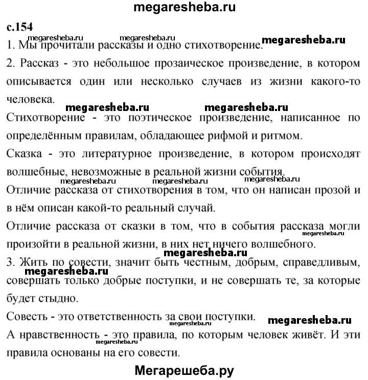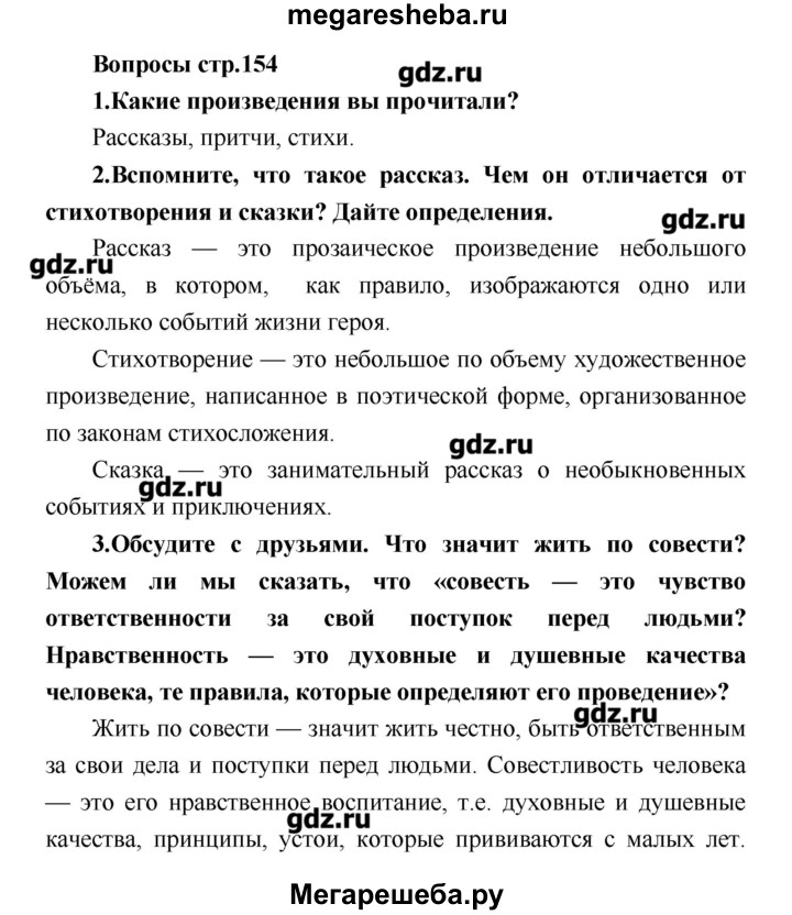 Подробный решебник (ГДЗ) по Литературе за 4 (четвертый) класс - готовый ответ часть 1. страница - 154. Авторы учебника: Климанова, Виноградская, Бойкина. Издательство: Просвещение 2017-2023.