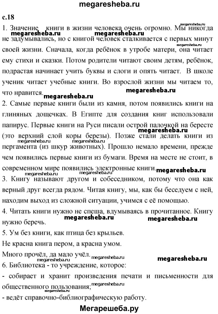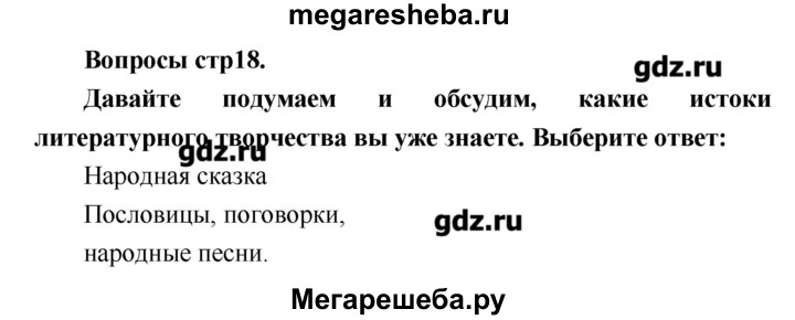 Подробный решебник (ГДЗ) по Литературе за 4 (четвертый) класс - готовый ответ часть 1. страница - 18. Авторы учебника: Климанова, Виноградская, Бойкина. Издательство: Просвещение 2017-2023.