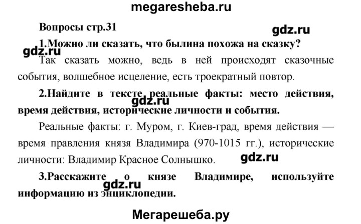 Подробный решебник (ГДЗ) по Литературе за 4 (четвертый) класс - готовый ответ часть 1. страница - 31. Авторы учебника: Климанова, Виноградская, Бойкина. Издательство: Просвещение 2017-2023.