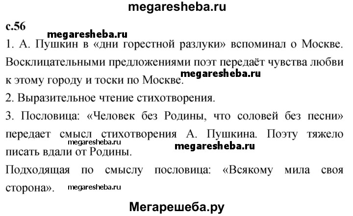 Подробный решебник (ГДЗ) по Литературе за 4 (четвертый) класс - готовый ответ часть 1. страница - 56. Авторы учебника: Климанова, Виноградская, Бойкина. Издательство: Просвещение 2017-2023.