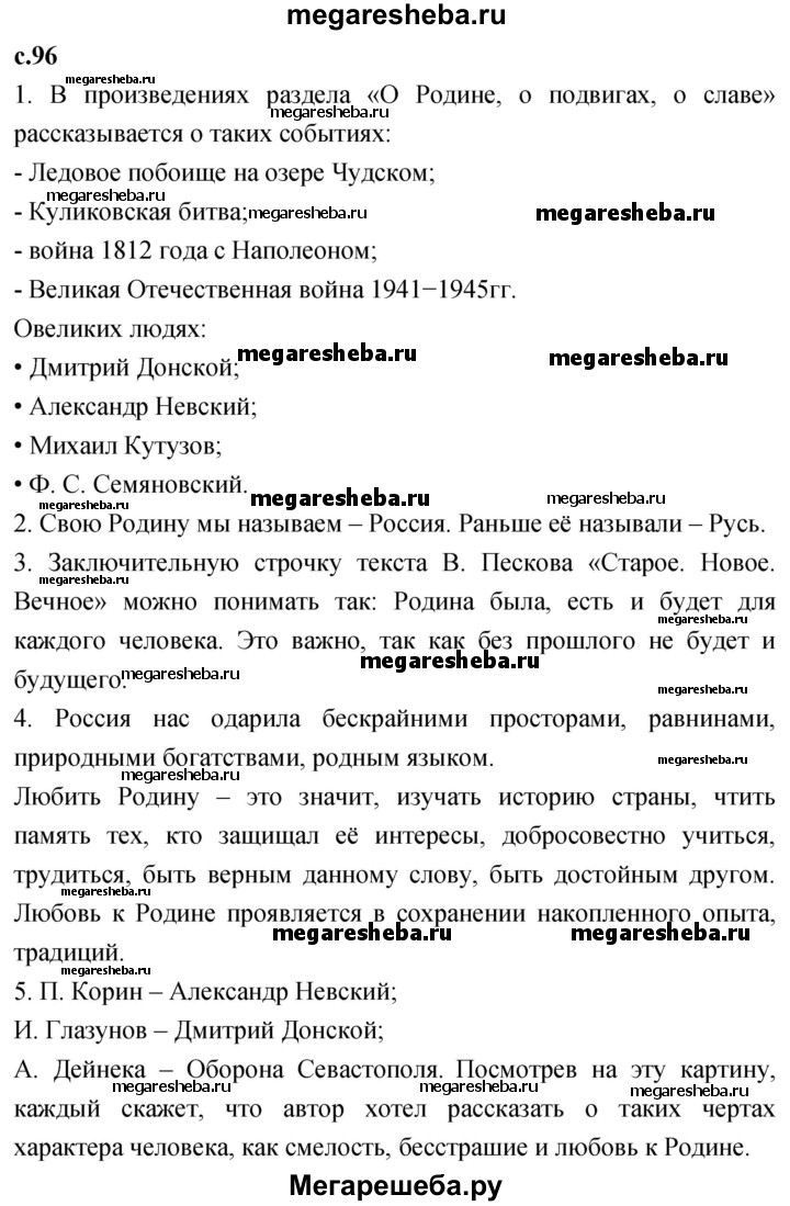 Подробный решебник (ГДЗ) по Литературе за 4 (четвертый) класс - готовый ответ часть 1. страница - 96. Авторы учебника: Климанова, Виноградская, Бойкина. Издательство: Просвещение 2017-2023.