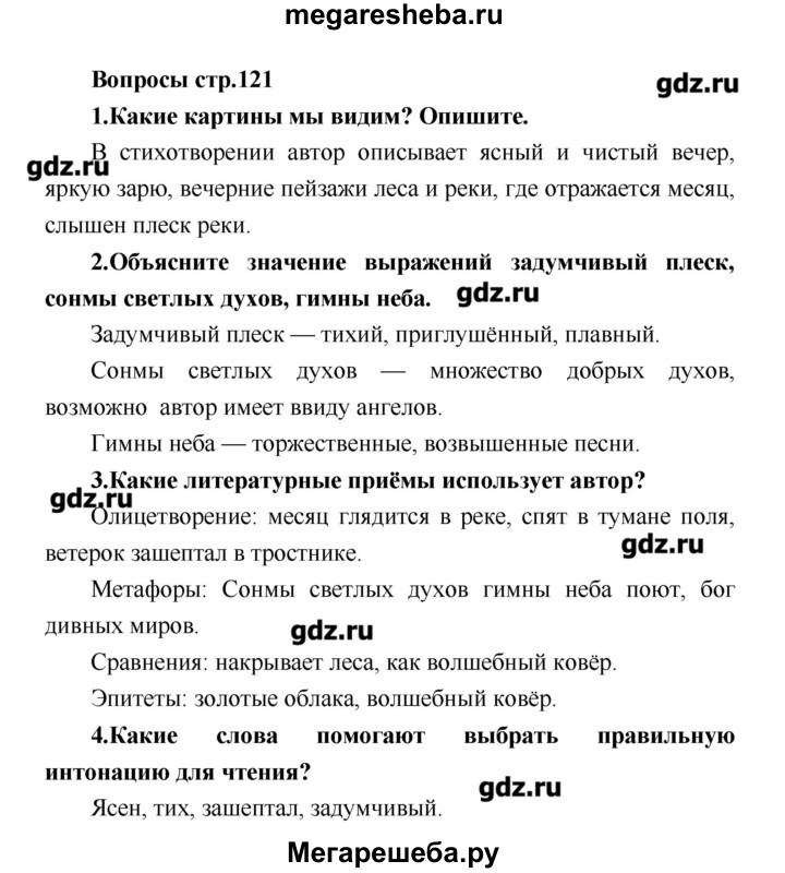 Подробный решебник (ГДЗ) по Литературе за 4 (четвертый) класс - готовый ответ часть 2. страница - 121. Авторы учебника: Климанова, Виноградская, Бойкина. Издательство: Просвещение 2017-2023.