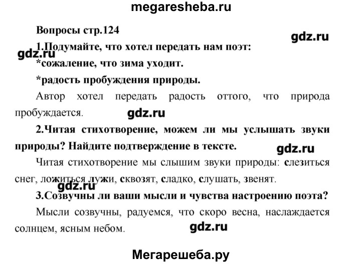 Подробный решебник (ГДЗ) по Литературе за 4 (четвертый) класс - готовый ответ часть 2. страница - 124. Авторы учебника: Климанова, Виноградская, Бойкина. Издательство: Просвещение 2017-2023.