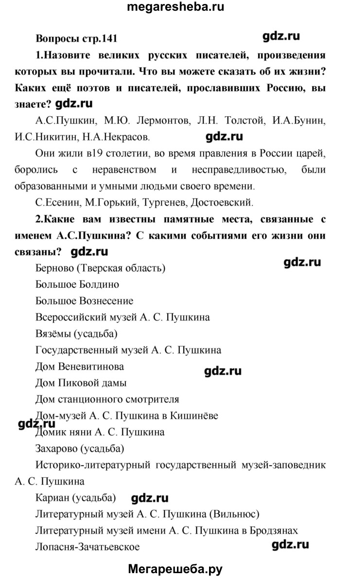 Подробный решебник (ГДЗ) по Литературе за 4 (четвертый) класс - готовый ответ часть 2. страница - 141. Авторы учебника: Климанова, Виноградская, Бойкина. Издательство: Просвещение 2017-2023.