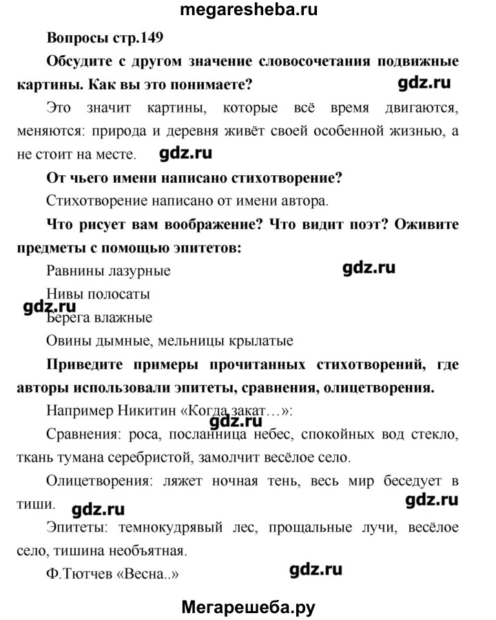 Подробный решебник (ГДЗ) по Литературе за 4 (четвертый) класс - готовый ответ часть 2. страница - 149. Авторы учебника: Климанова, Виноградская, Бойкина. Издательство: Просвещение 2017-2023.