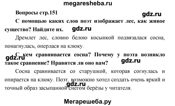 Подробный решебник (ГДЗ) по Литературе за 4 (четвертый) класс - готовый ответ часть 2. страница - 151. Авторы учебника: Климанова, Виноградская, Бойкина. Издательство: Просвещение 2017-2023.
