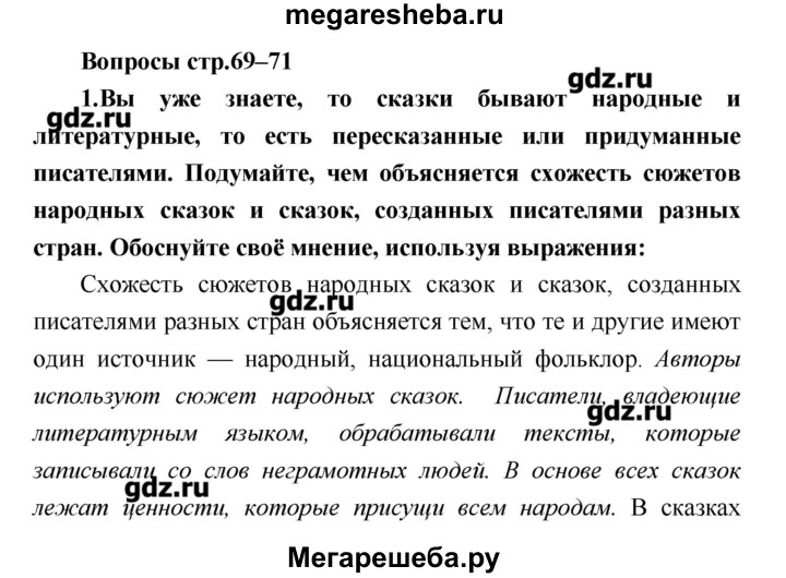 Подробный решебник (ГДЗ) по Литературе за 4 (четвертый) класс - готовый ответ часть 2. страница - 69. Авторы учебника: Климанова, Виноградская, Бойкина. Издательство: Просвещение 2017-2023.