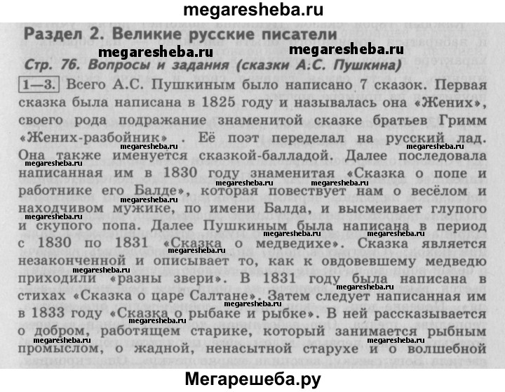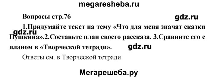 Подробный решебник (ГДЗ) по Литературе за 4 (четвертый) класс - готовый ответ часть 2. страница - 76. Авторы учебника: Климанова, Виноградская, Бойкина. Издательство: Просвещение 2017-2023.
