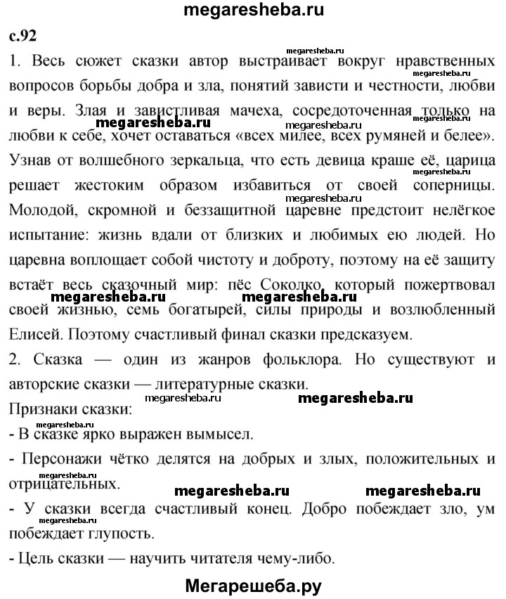 Подробный решебник (ГДЗ) по Литературе за 4 (четвертый) класс - готовый ответ часть 2. страница - 92. Авторы учебника: Климанова, Виноградская, Бойкина. Издательство: Просвещение 2017-2023.