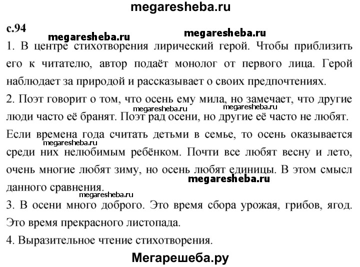 Подробный решебник (ГДЗ) по Литературе за 4 (четвертый) класс - готовый ответ часть 2. страница - 94. Авторы учебника: Климанова, Виноградская, Бойкина. Издательство: Просвещение 2017-2023.