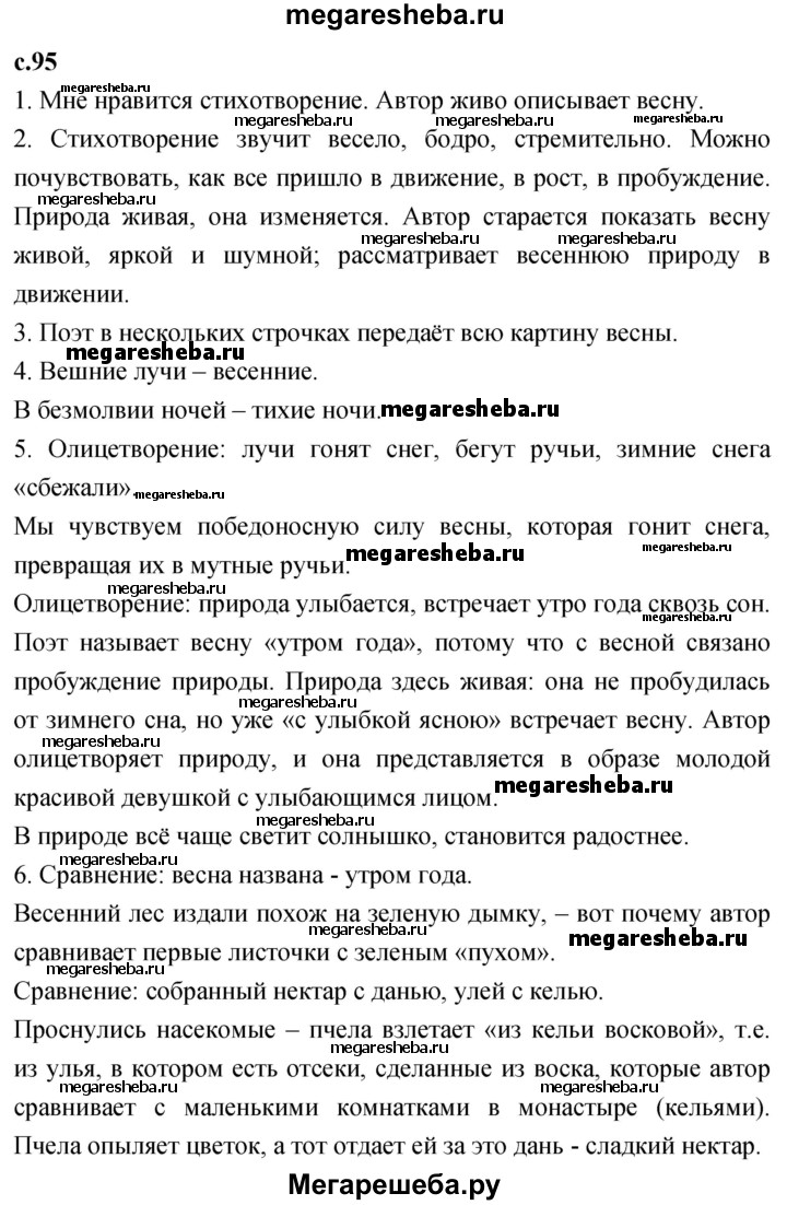 Подробный решебник (ГДЗ) по Литературе за 4 (четвертый) класс - готовый ответ часть 2. страница - 95. Авторы учебника: Климанова, Виноградская, Бойкина. Издательство: Просвещение 2017-2023.