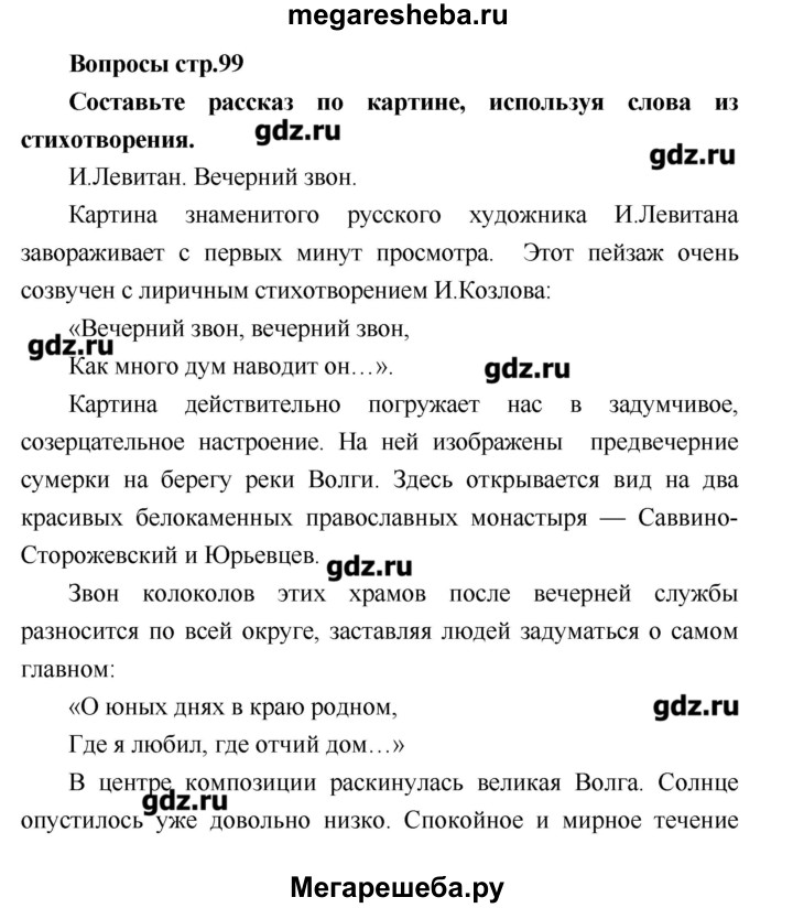 Подробный решебник (ГДЗ) по Литературе за 4 (четвертый) класс - готовый ответ часть 2. страница - 99. Авторы учебника: Климанова, Виноградская, Бойкина. Издательство: Просвещение 2017-2023.