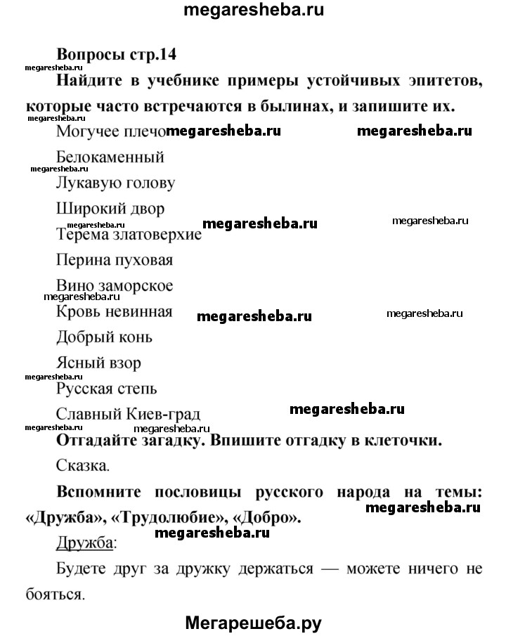 Подробный решебник (ГДЗ) по Литературе за 4 (четвертый) класс творческая тетрадь - готовый ответ страница - 14. Авторы учебника: Коти. Издательство: Просвещение 2016-2024.