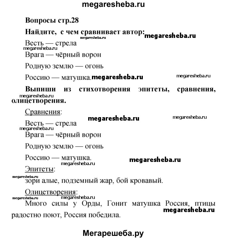 Подробный решебник (ГДЗ) по Литературе за 4 (четвертый) класс творческая тетрадь - готовый ответ страница - 28. Авторы учебника: Коти. Издательство: Просвещение 2016-2024.