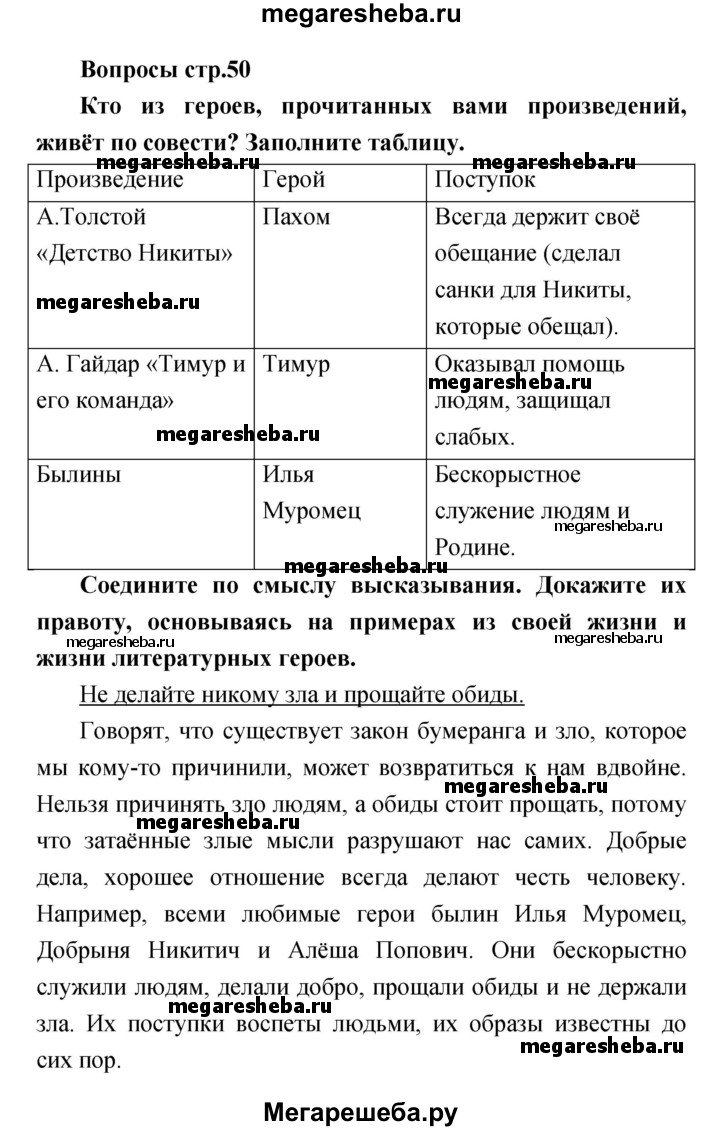 ГДЗ по литературе 4 класс Коти творческая тетрадь страница - 50