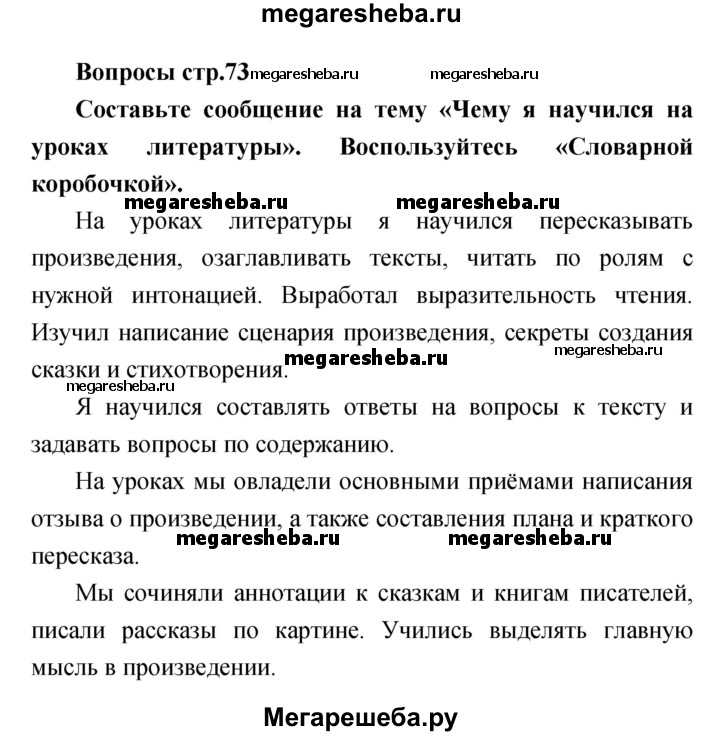 ГДЗ по литературе 4 класс Коти творческая тетрадь страница - 73
