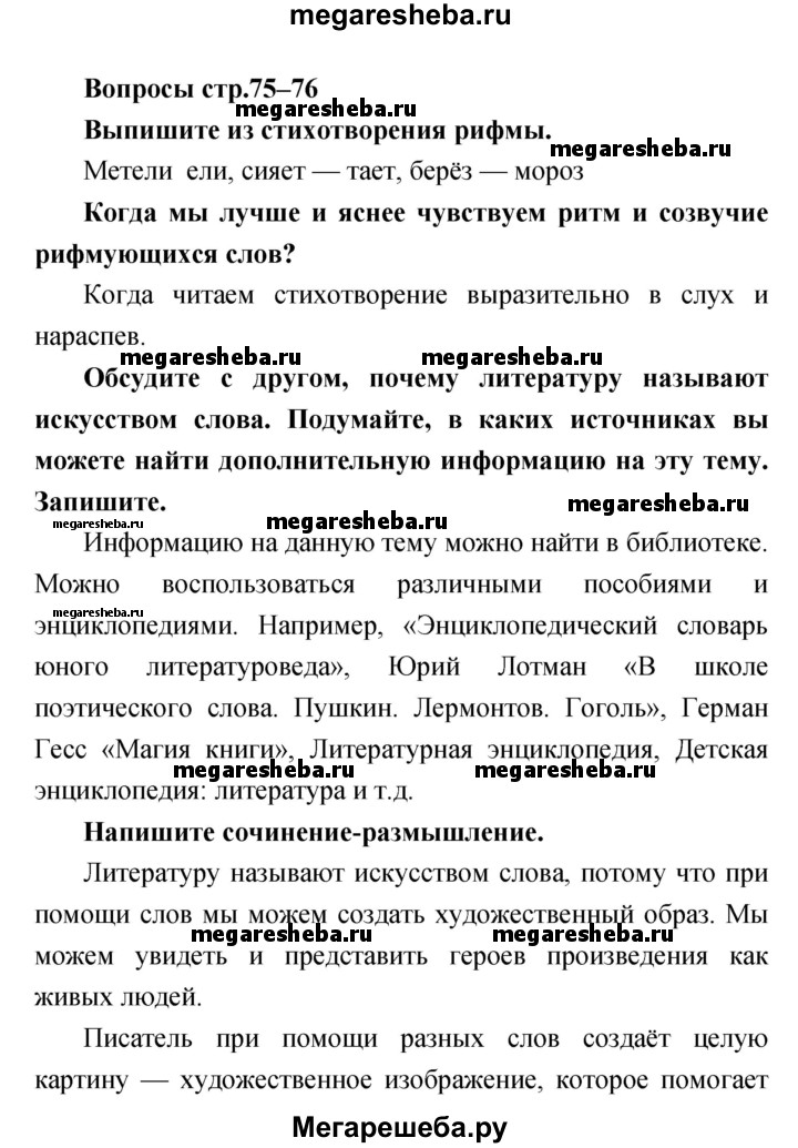 ГДЗ по литературе 4 класс Коти творческая тетрадь страница - 75