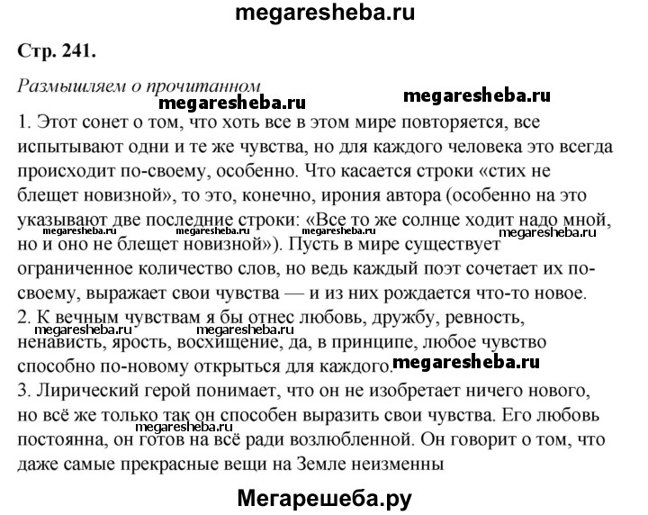 Подробный решебник (ГДЗ) по Литературе за 8 (восьмой) класс - готовый ответ часть 2 (страница) - 241. Авторы учебника: Коровина, Журавлев, Коровин. Издательство: Просвещение 2017-2023.