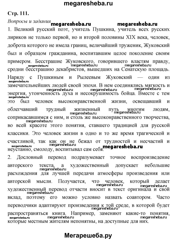 ГДЗ по литературе 8 класс Меркин часть 1 (страница) - 111