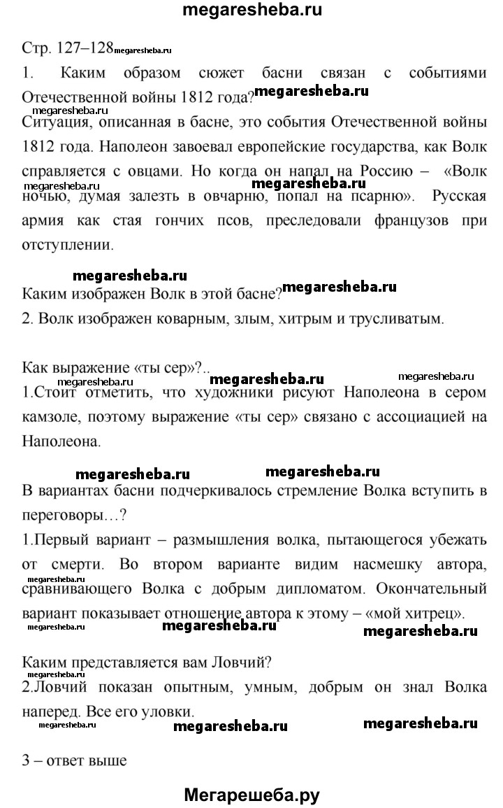 Подробный решебник (ГДЗ) по Литературе за 8 (восьмой) класс - готовый ответ часть 1 (страница) - 127. Авторы учебника: Меркин. Издательство: Русское слово 2018.