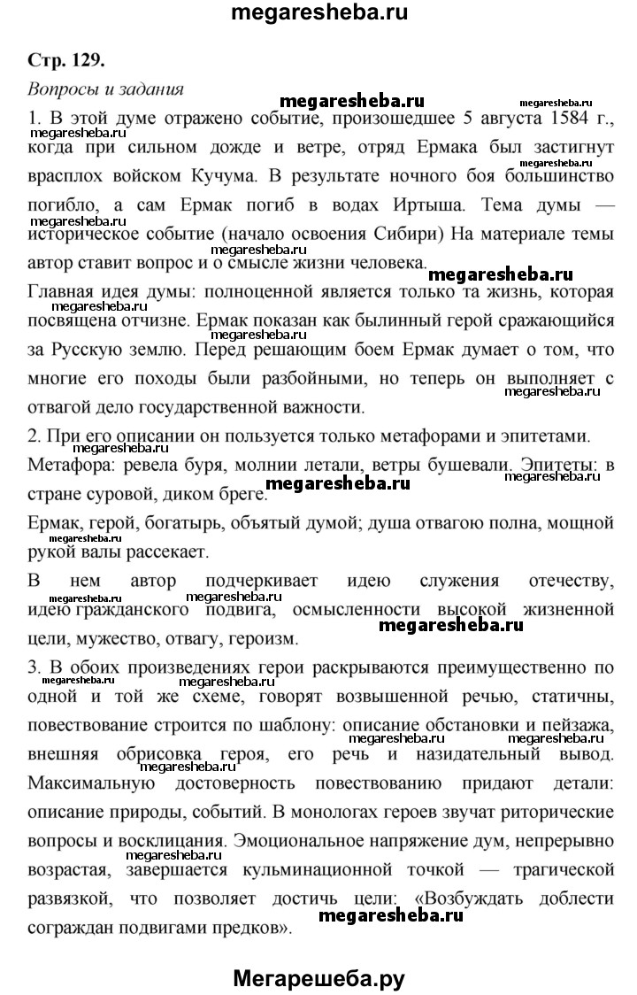 ГДЗ по литературе 8 класс Меркин часть 1 (страница) - 129