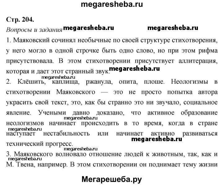 Подробный решебник (ГДЗ) по Литературе за 8 (восьмой) класс - готовый ответ часть 2 (страница) - 204. Авторы учебника: Меркин. Издательство: Русское слово 2018.