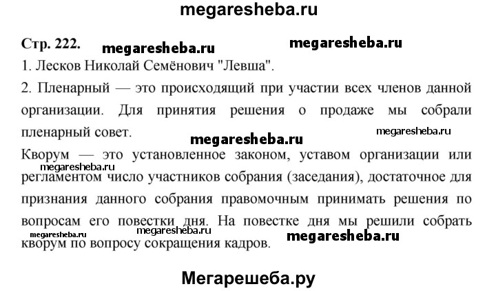 Подробный решебник (ГДЗ) по Литературе за 8 (восьмой) класс - готовый ответ часть 2 (страница) - 222. Авторы учебника: Меркин. Издательство: Русское слово 2018.