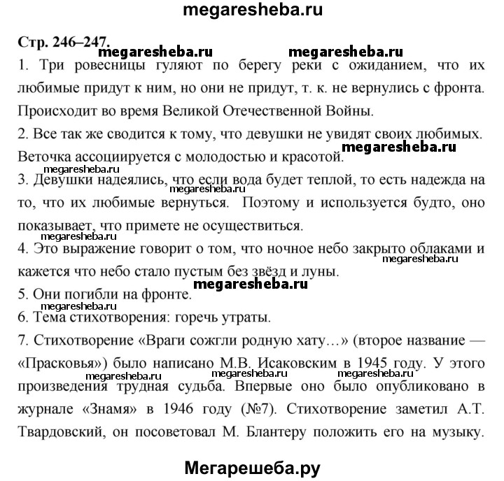 Подробный решебник (ГДЗ) по Литературе за 8 (восьмой) класс - готовый ответ часть 2 (страница) - 246–247. Авторы учебника: Меркин. Издательство: Русское слово 2018.