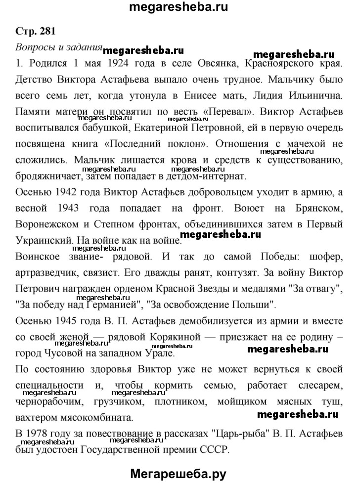 ГДЗ по литературе 8 класс Меркин часть 2 (страница) - 281