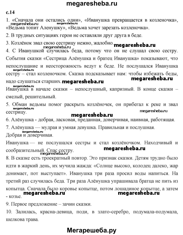 ГДЗ по литературе 3 класс Климанова часть 1. страница - 14