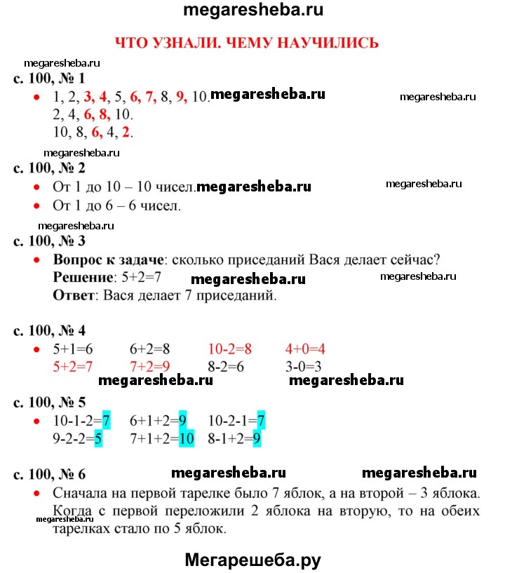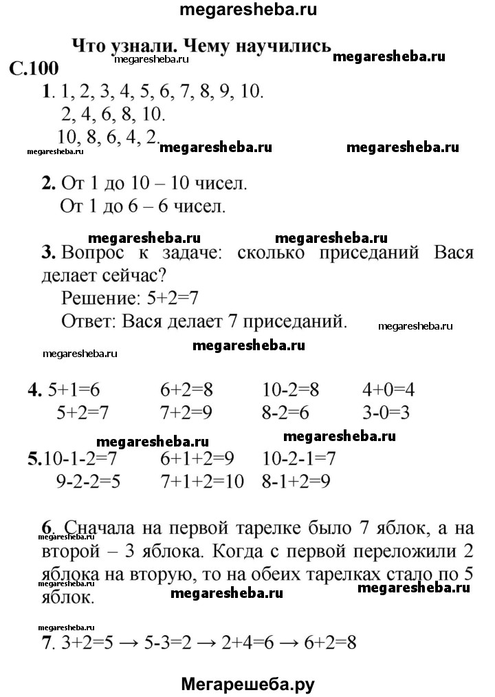 Подробный решебник (ГДЗ) по Математике за 1 (первый) класс - готовый ответ часть 1 - стр.100. Авторы учебника: Моро, Волкова, Степанова. Издательство: Просвещение 2016-2025.