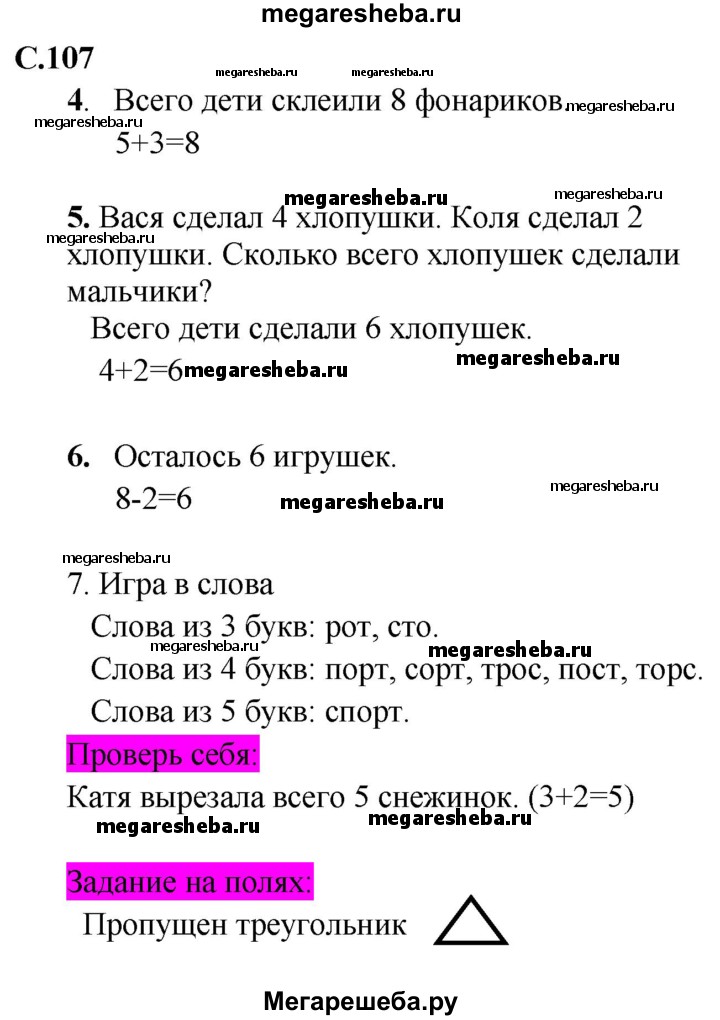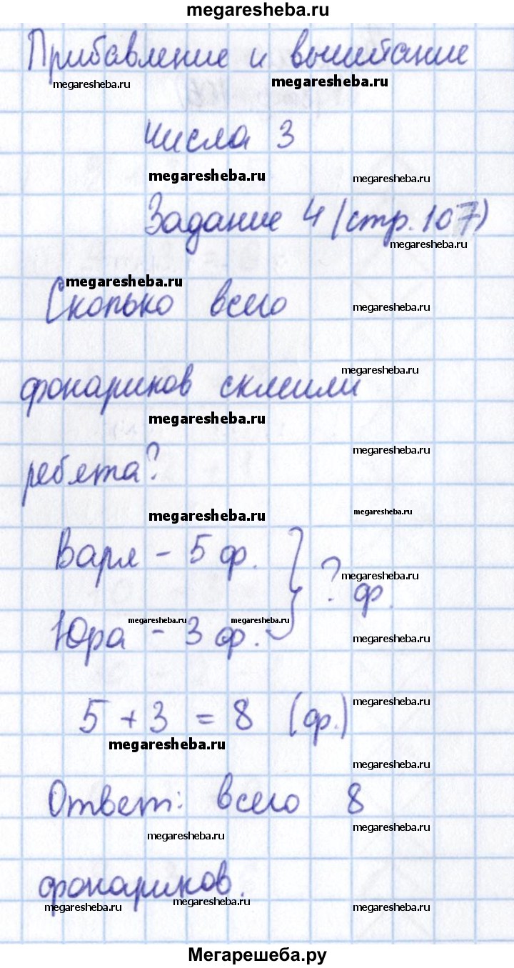 Подробный решебник (ГДЗ) по Математике за 1 (первый) класс - готовый ответ часть 1 - стр.107. Авторы учебника: Моро, Волкова, Степанова. Издательство: Просвещение 2016-2025.