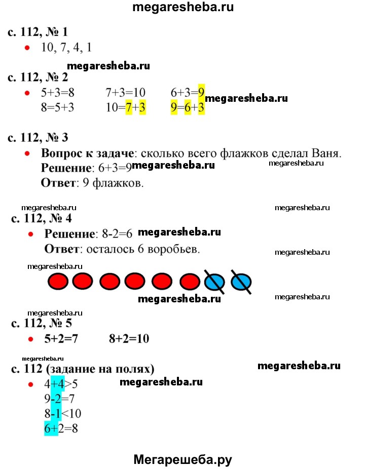 ГДЗ по математике 1 класс Моро часть 1 - стр.112