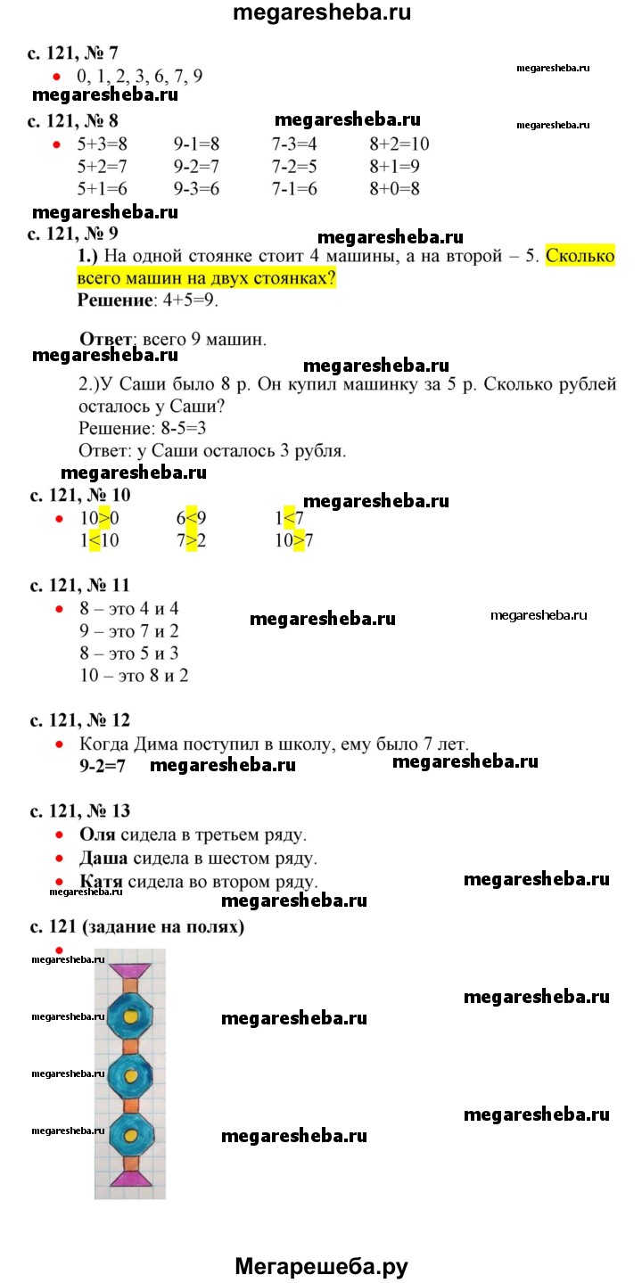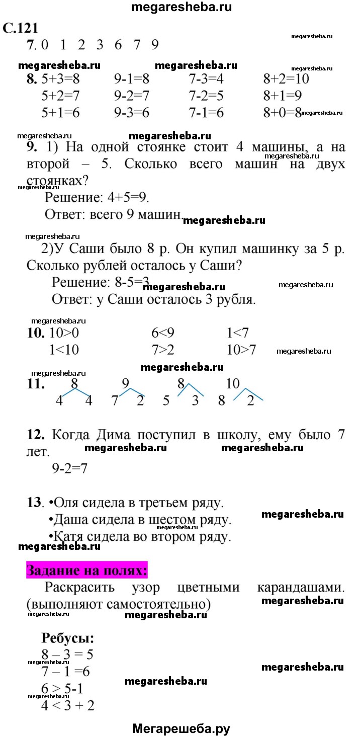 Подробный решебник (ГДЗ) по Математике за 1 (первый) класс - готовый ответ часть 1 - стр.121. Авторы учебника: Моро, Волкова, Степанова. Издательство: Просвещение 2016-2025.