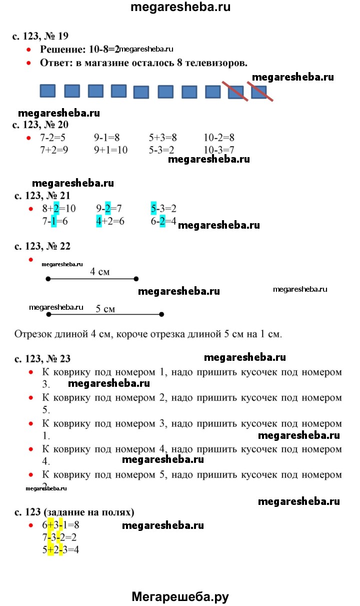 ГДЗ по математике 1 класс Моро часть 1 - стр.123